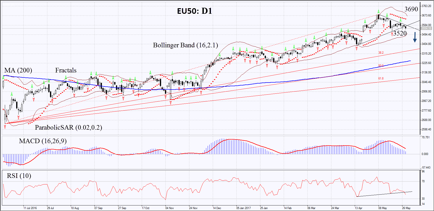 The European stocks decline in price for the 4th consecutive day amid higher political risks in Italy, Greece and the United Kingdom. Will the decrease of the Euro STOXX50 index continue?